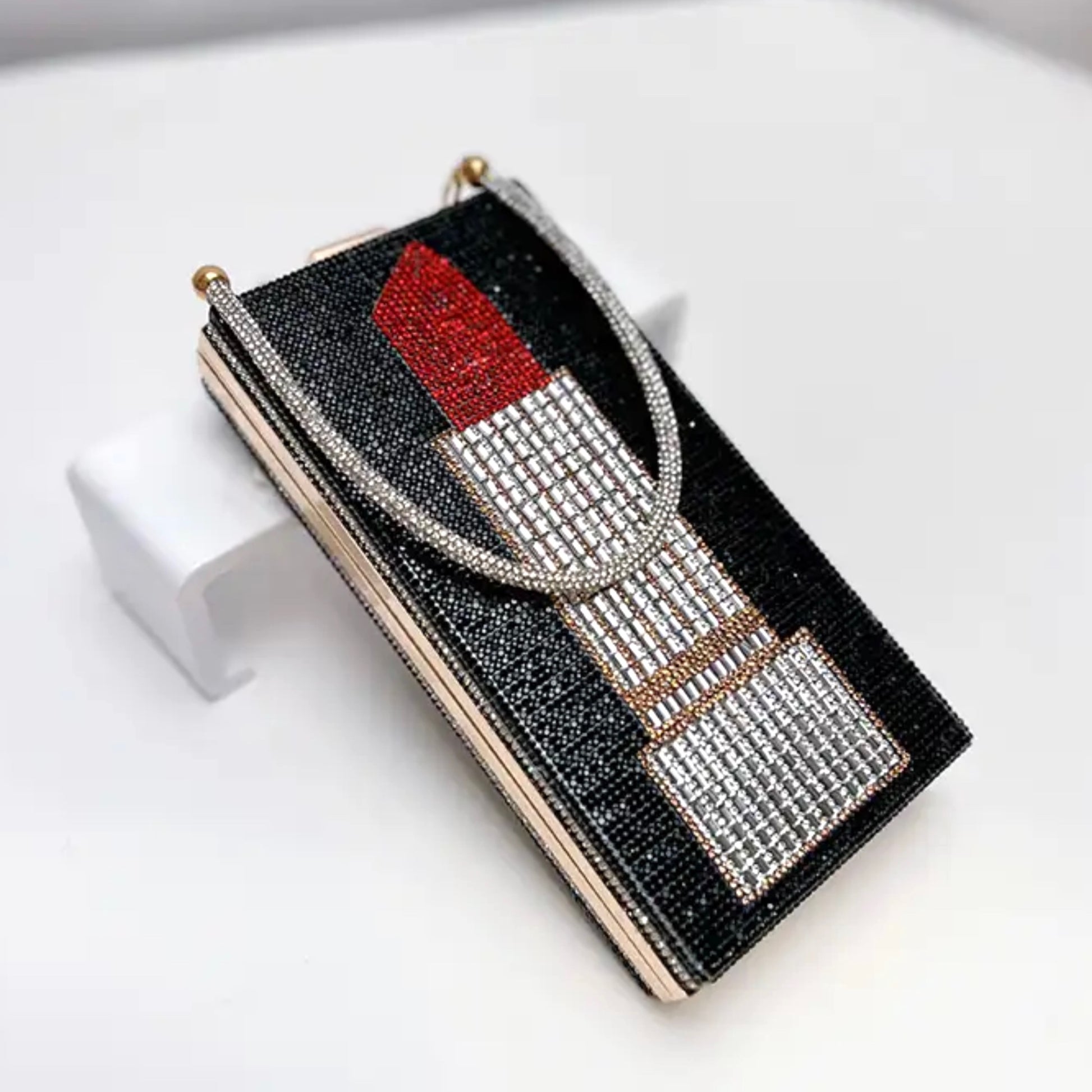 Lipstick Rhinestone Clutch in Black