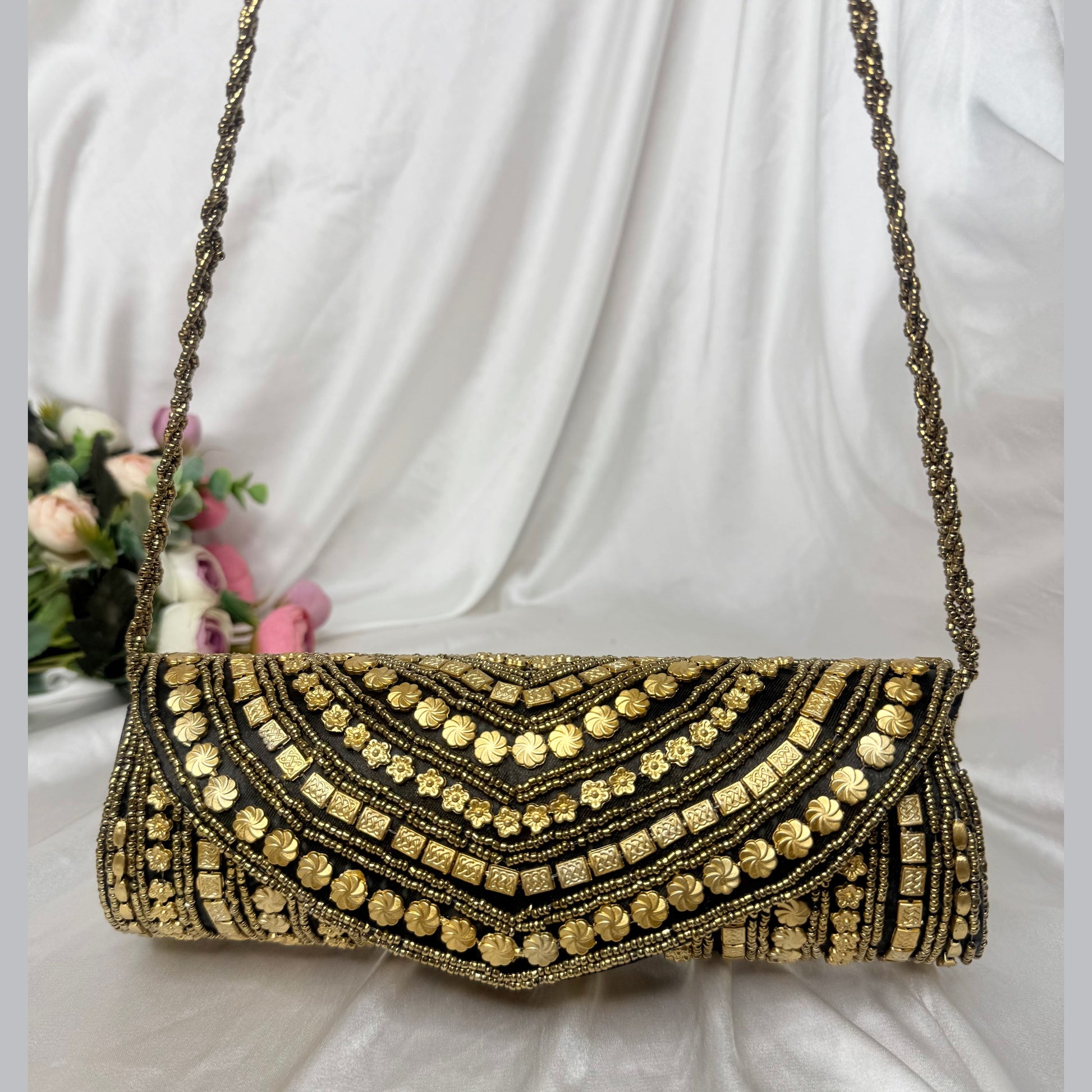 Beautiful cylindrical clutch bag embellished with beads, is a versatile sling to carry with both western and traditional outfits.